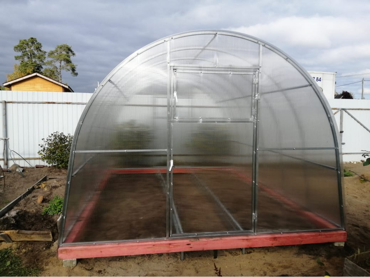 В разобранном виде теплица состоит из отдельных сварных рам в виде дуги.