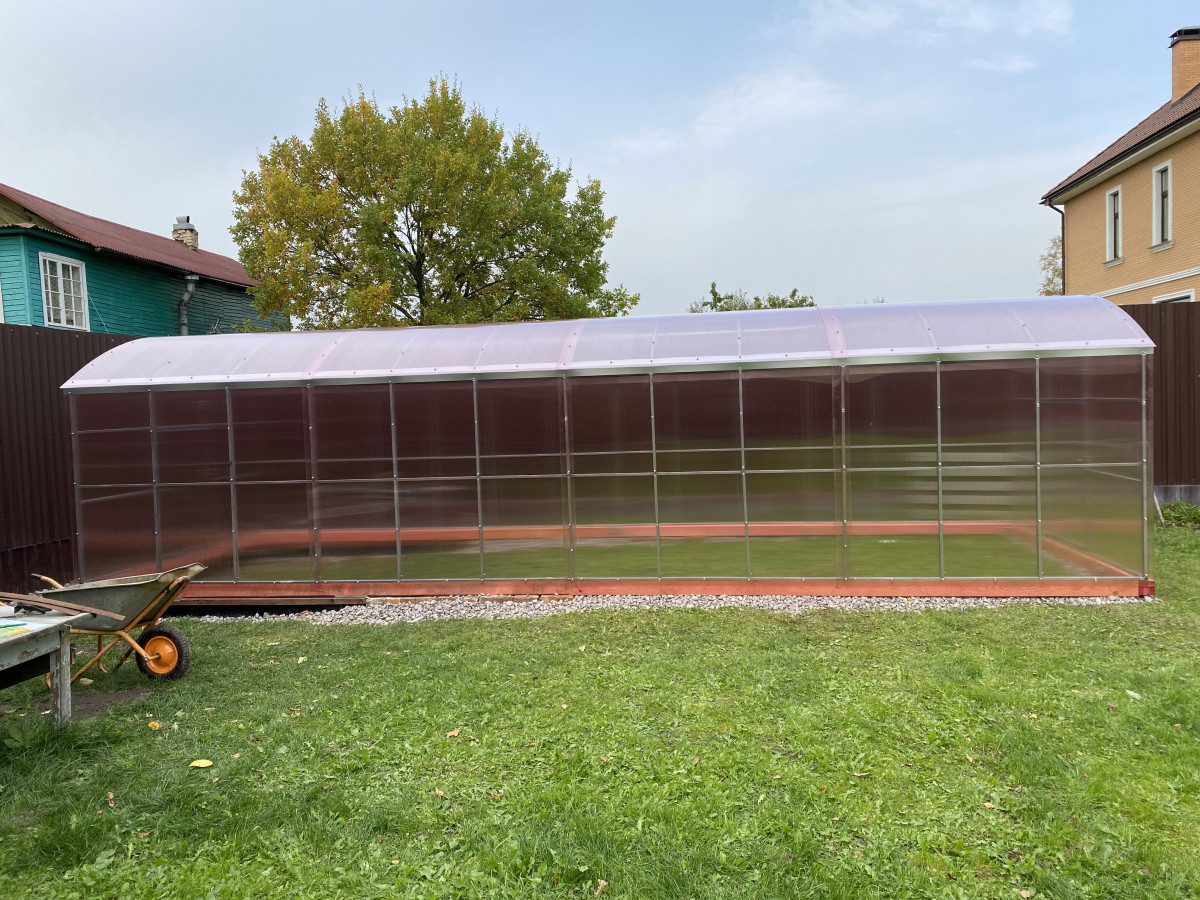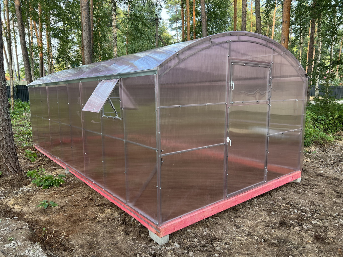 Возможна самостоятельная сборка по подробной инструкции. Сборка теплицы монтажниками-профессионалами компании занимает порядка 3 часов. В качестве основания рекомендуется использовать бетонный, либо деревянный фундамент из бруса. Предварительно брус необходимо обработать антисептиком. Полный комплект состоит из: