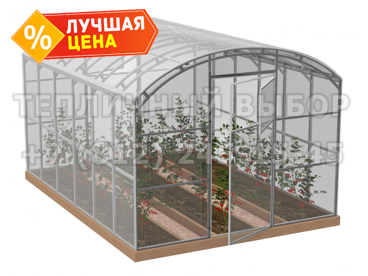 Теплица из поликарбоната Усиленная Прямостенная 2,5х4 h=2.1 м профиль 20х40 мм