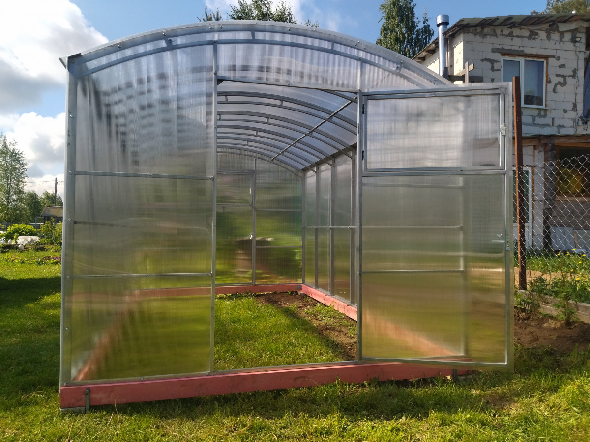 • теплица рекомендована для северных широт с большим количеством осадков, выдерживает порывистые ветра и сильные снегопады, не деформируется под слоем слежавшегося снега толщиной до 90 см;